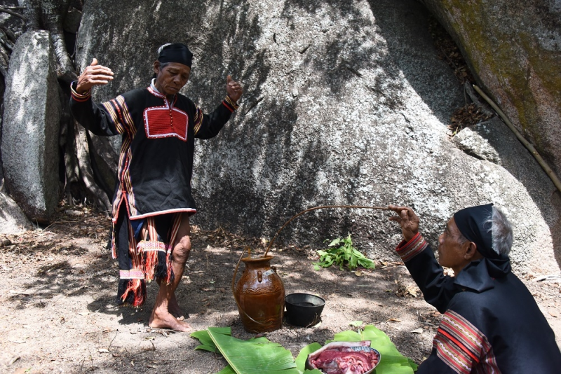 Lễ cúng cầu mưa nhằm cầu mong trời đất ban cho mưa thuận gió hòa. Ảnh: Ngọc Thu