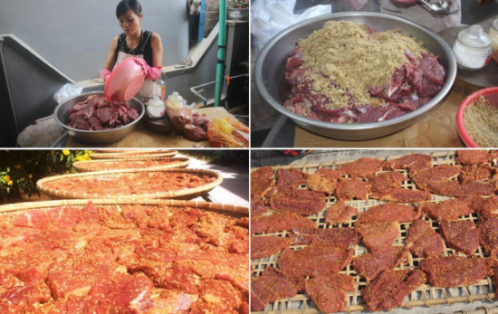 Đặc sản bò một nắng chấm muối kiến vàng.