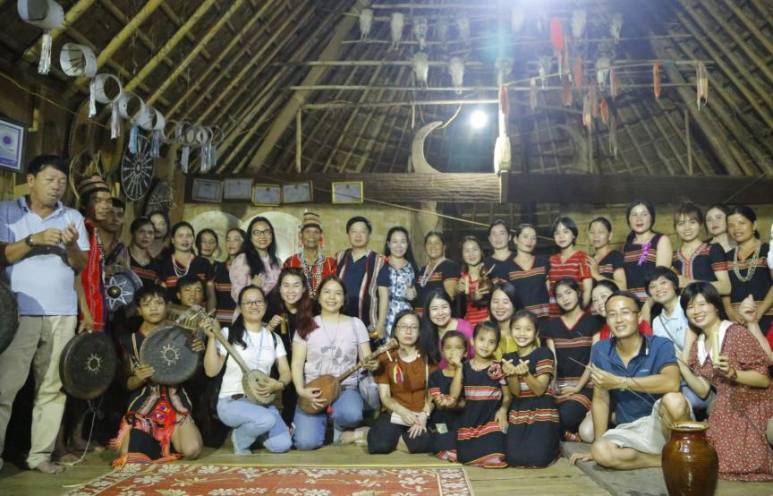 Người dân làng Đắk Răng chụp ảnh với Du khách.