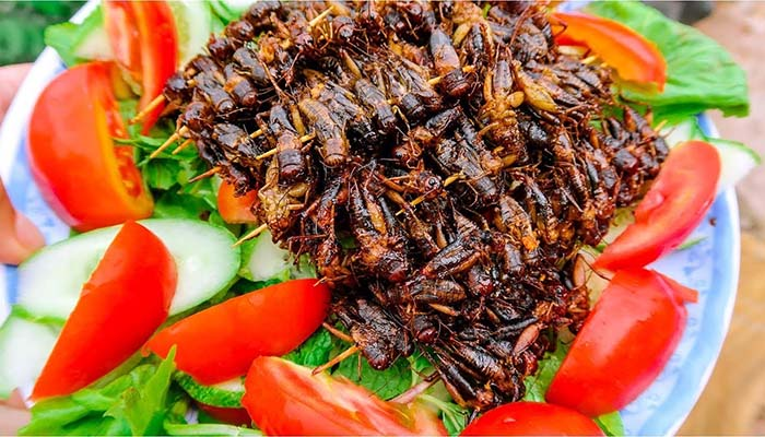 Dế chiên Kon Tum Là món ăn vặt thú vị dành cho những ai thích trải nghiệm ẩm thực địa phương độc đáo. Thực khách sẽ cảm nhận trọn vẹn độ béo, độ giòn của dế với hương vị riêng biệt. Ngoài ra, thực khách sẽ được chiêu đãi bữa tiệc với rất nhiều món dế đa dạng khác nhau với hương vị khác nhau, từ dế than cho đến dế cơm, dế lửa.